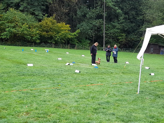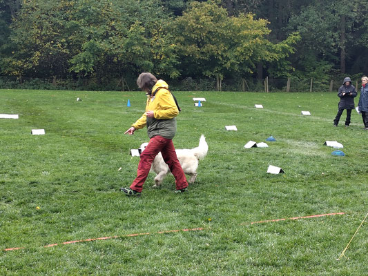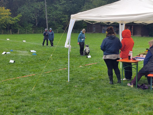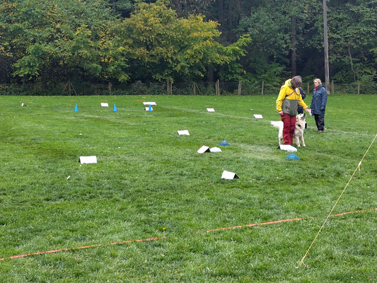 Besonders schön war das Miteinander unter den Rally Obedience Startern abseits des Wettkampfs: Als mehrere Autos auf der Parkplatzwiese im aufgeweichten Boden stecken blieben, half man sich tatkräftig gegenseitig. Mit echter Muskelkraft konnten am Ende alle Fahrzeuge wieder befreit werden.
